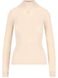 logo-patch roll-neck top Highlights - Butter yellow - Stretch-design - Knitted construction - High neck - Applique logo - Long sleeves - Ribbed cuffs - Straight hem Made in France Composition Polyamide 90%, Spandex/Elastane 10% SIZE & FIT FittingInformation Designed for a close fit throughout Made from a midweight stretch fabric, this piece offers elasticity and flexibility when worn