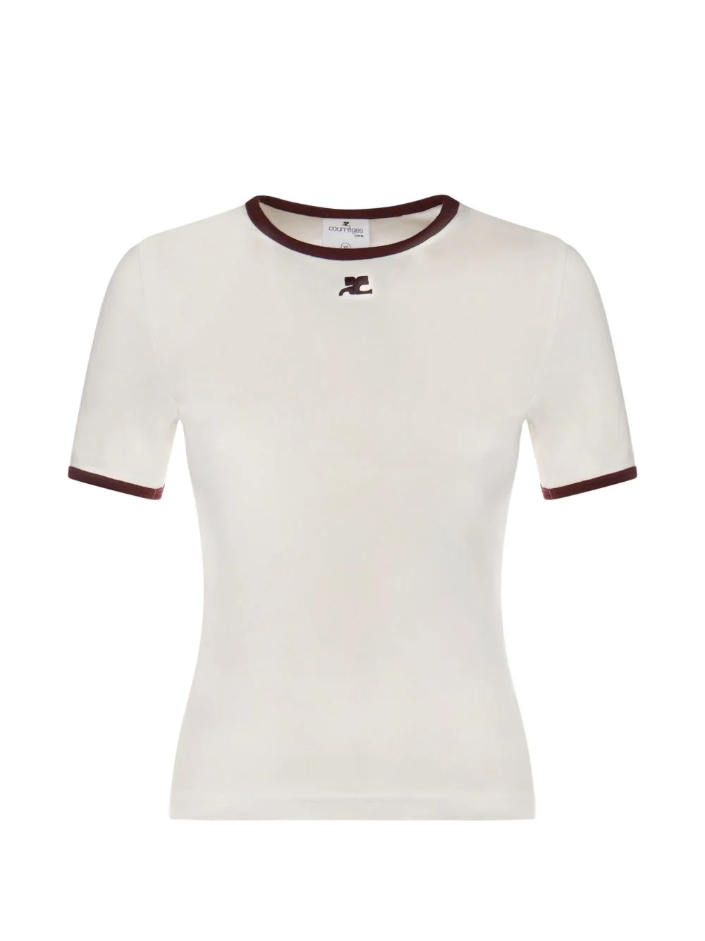 logo-trim T-shirt Highlights - Heritage white - Round neck - Short sleeves - Trim detail - Front logo detail Imported Composition Cotton 100% Washing instructions Read Manufacturer Guidelines
