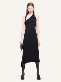 Fitted asymmetrical long dress made of wool. Bare shoulders and upper back. Slit on the front. The model is 1.76m tall and wears a size 36. DETAILS Composition: 93% wool, 4% elastane, 3% polyamide Country of Manufacture: IT SKU: 424CRO498WO01139999 Color: Black