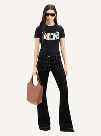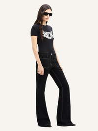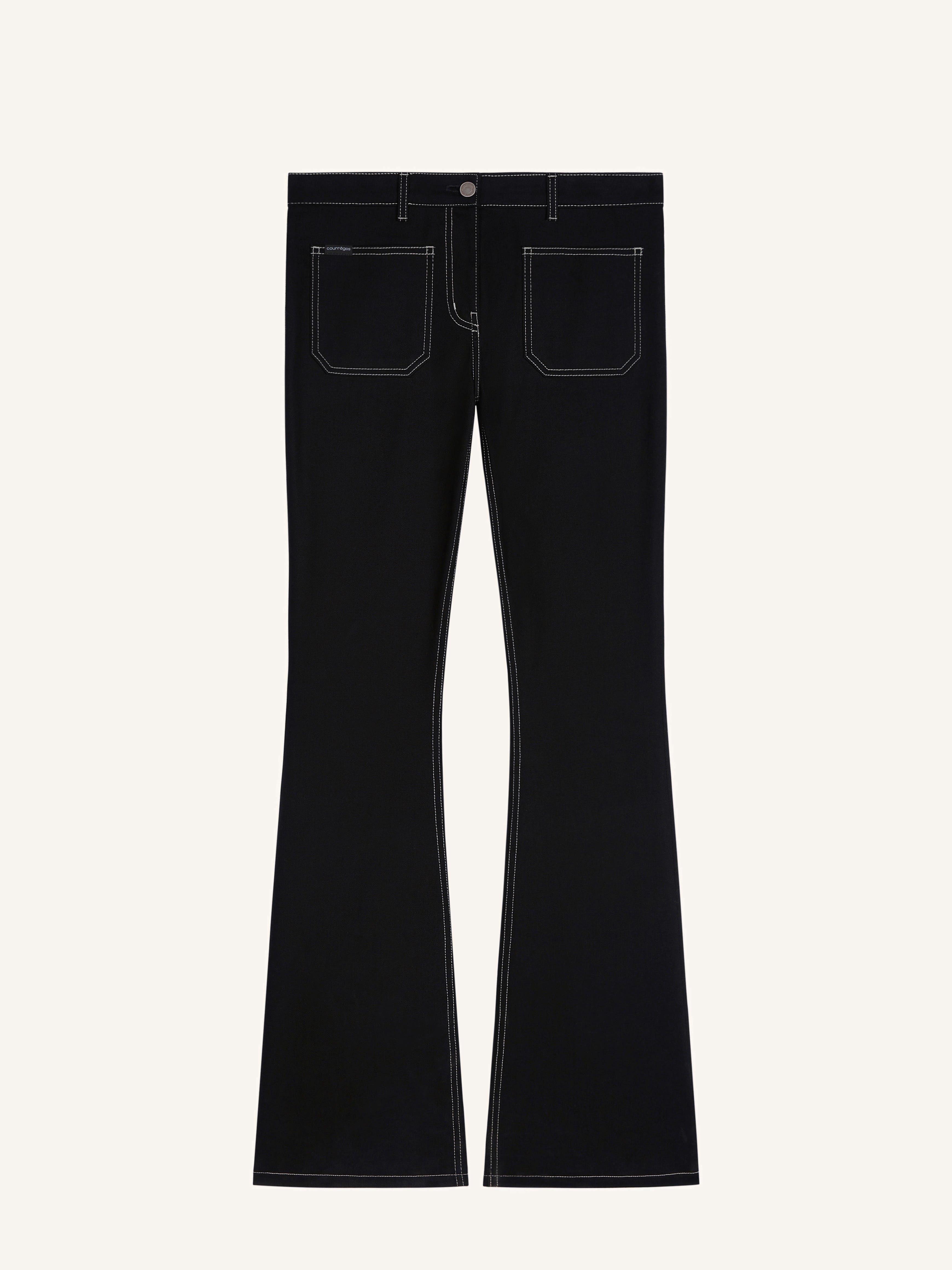 Topstitched denim bootcut pants with two patch pockets at front and back. Courreges logo on front pocket and AC logo embroidered on back pocket. The model is 1.75m tall and wears a size 26. DETAILS Composition: 98% cotton, 2% elastane Country of Manufacture: TN SKU: 324DPA242DE0020B044 Color: Dark Green