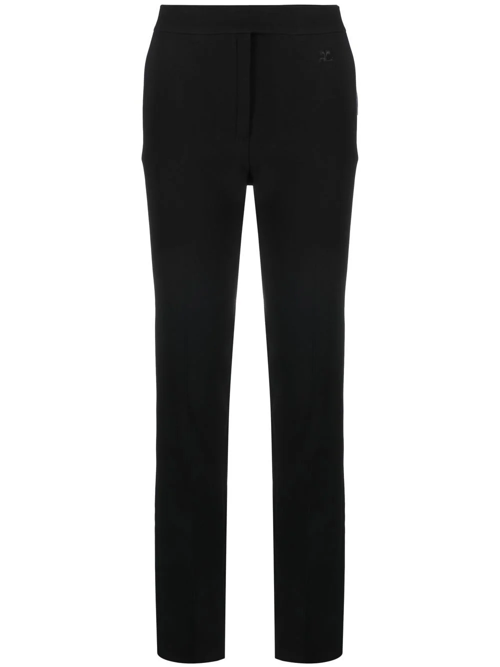 mid-rise slim-fit trousers Courreges displays its signature minimalist aesthetic with these trousers. Presented in an understated black hue, these trousers boast a refined slim-cut silhouette which lends a tasteful finish to the staple piece. Imported Composition Lining: Cupro 100% Outer: Viscose 96%, Spandex/Elastane 4% SIZE & FIT Model measurements Height 5 ft 10 in(1.77 m) Bust/Chest 32.67 in(83 cm) Hips 35.43 in(90 cm) Waist 23.62 in(60 cm) Measurement FRONT RISE 9.48 in(24.1 cm) INSIDE LEG 35.51 in(90.2 cm) BACK RISE 12 in(30.5 cm) HIPS 34.01 in(86.4 cm) Hem Width 20.98 in(53.3 cm) WAIST 30 in(76.2 cm) FittingInformation This piece fits true to size. We recommend you get your regular size Cut for a slim fit Made with a mid-weight stretch fabric Washing instructions Dry Clean Only
