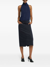belted midi skirt Highlights - Black - Concealed front fastening - Two side slit pockets - Two rear patch pockets - Belted waist Imported Composition Polyester 65%, Cotton 35%