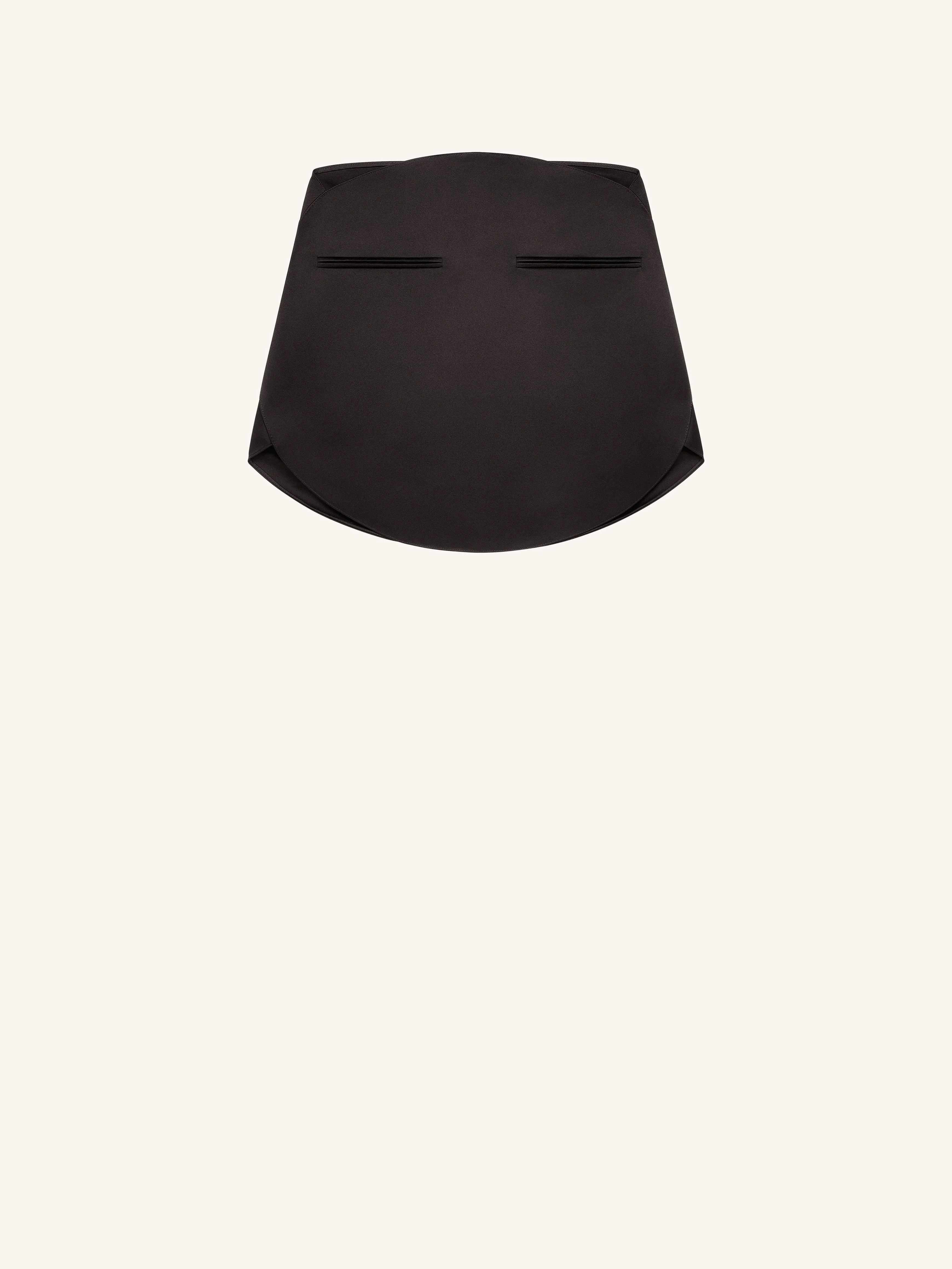 Mini satin skirt with two front welt pockets. The model is 1.74m tall and wears a size 36. DETAILS Composition: 100% polyester Country of Manufacture: RO SKU: 325CJU283PL01629999 Color: Black