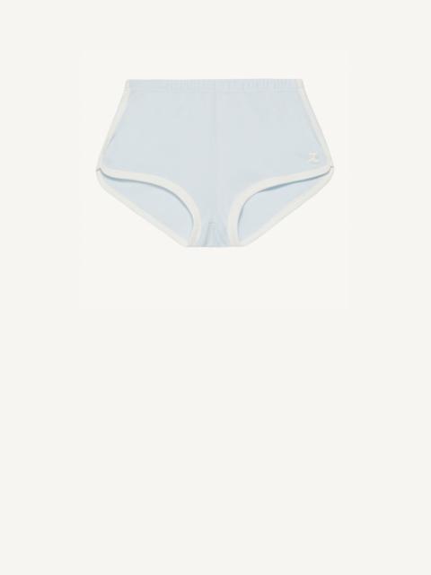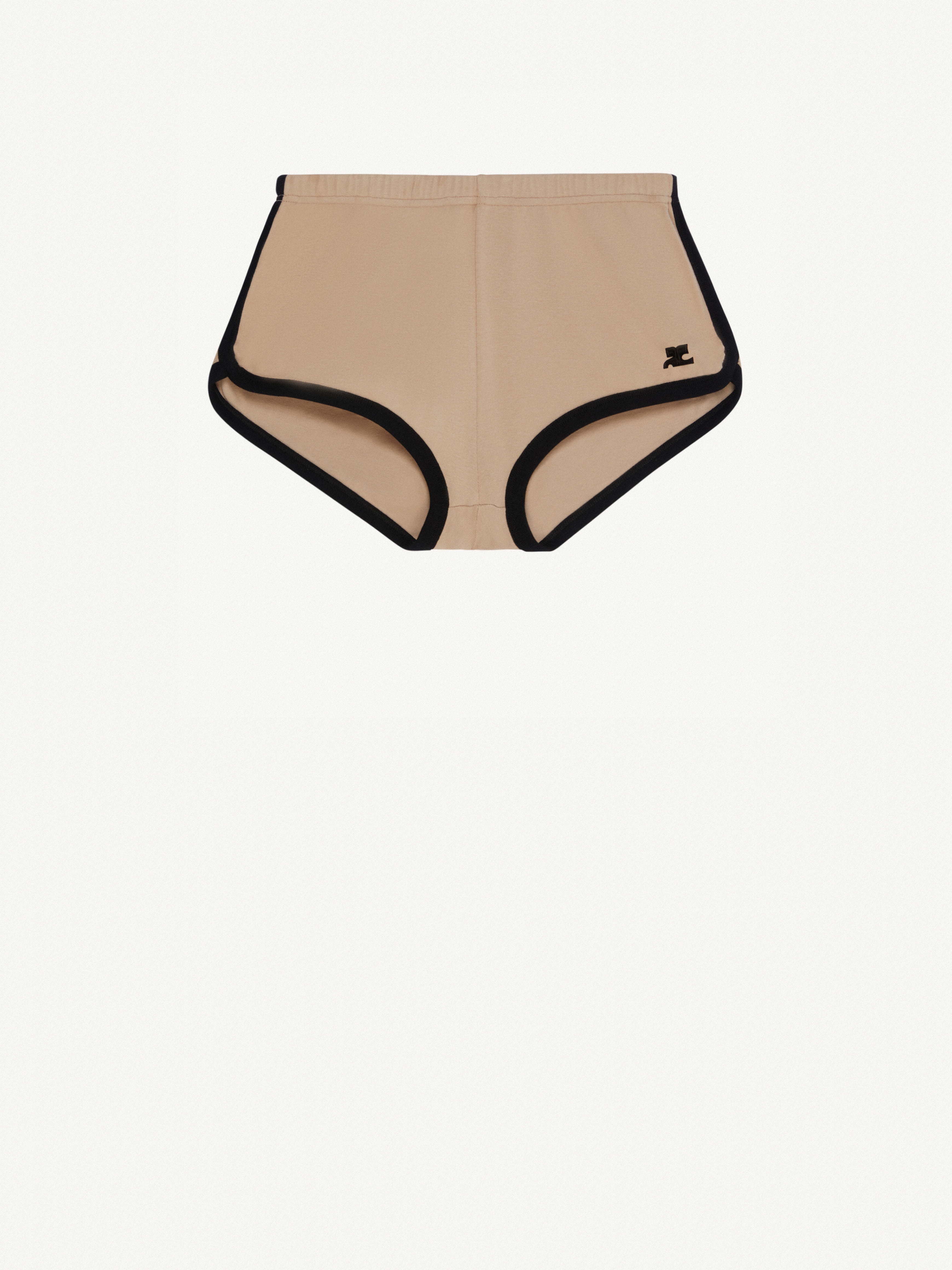Jersey mini shorts with elasticated waistband, embroidered logo and contrasting biais. DETAILS Composition: 100% COTON 100% COTON Details: 100% cotton Country of manufacture: Portugal Color: Sable / Noir Item code: 223JSH023JS0070I040