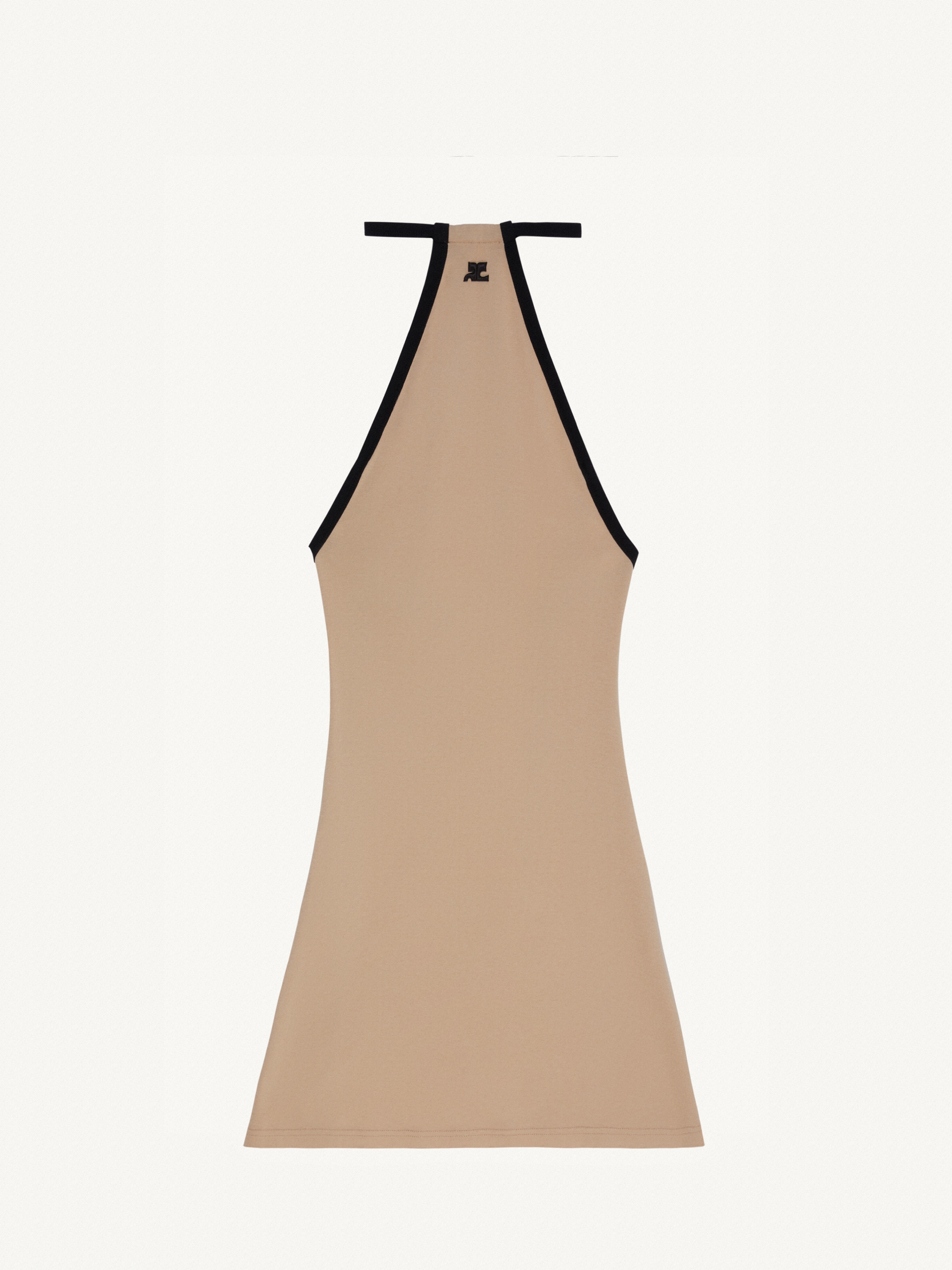 Short jersey dress with choker neckline, embroidered logo and contrasting biais. DETAILS Composition: 100% COTON 100% COTON Details: 100% cotton Country of manufacture: Portugal Color: Sable / Noir Item code: 223JRO229JS0070I040