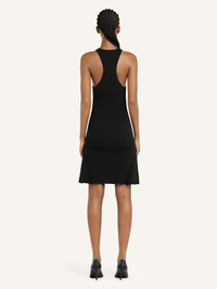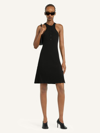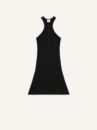 Sleeveless rib knit A-line short dress. Racer back, button-down placket with AC logo. The model is 1.75m tall and wears a size S. DETAILS Composition: 70% viscose, 30% polyester Country of Manufacture: BG SKU: 125MRO572FI00019999 Color: Black