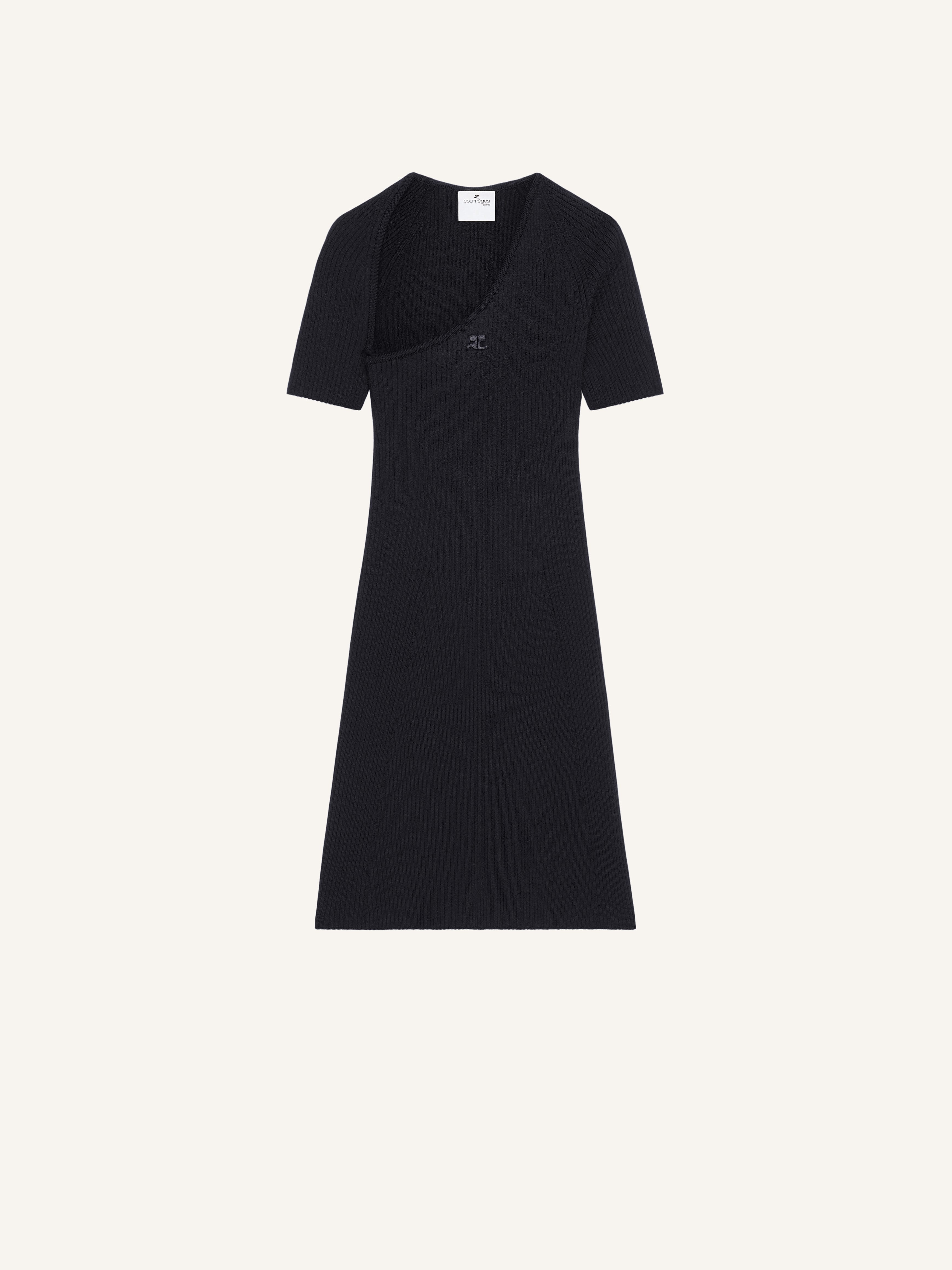 Rib knit trapeze mini dress. Bias neckline and short sleeves. AC logo centered on chest. DETAILS Composition: 70% viscose, 30% polyester Country of Manufacture: IT SKU: 424MRO519FI00019999 Color: Black