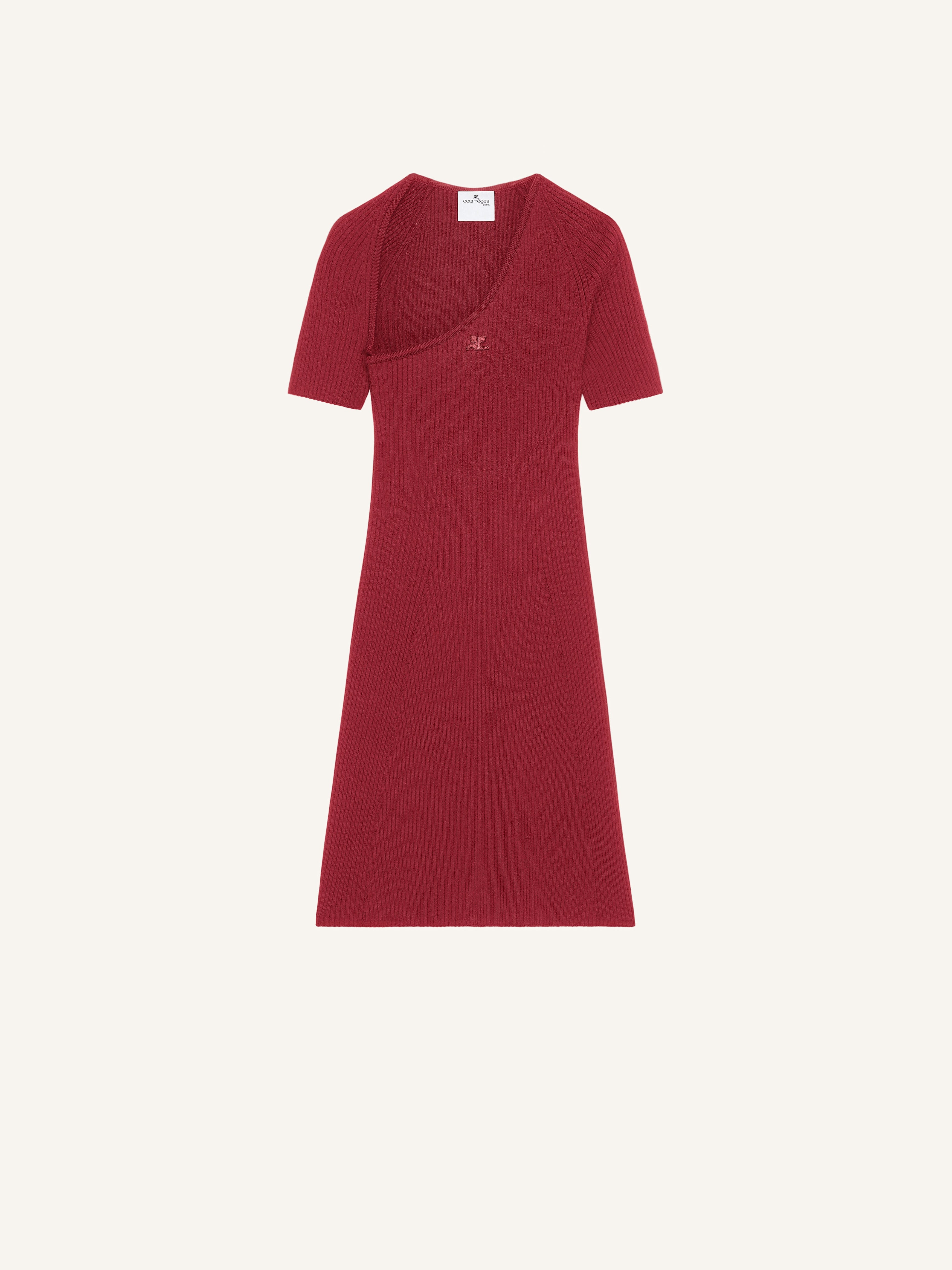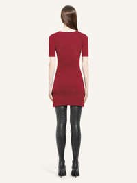 Rib knit trapeze mini dress. Bias neckline and short sleeves. AC logo centered on chest. DETAILS Composition: 70% viscose, 30% polyester Country of Manufacture: IT SKU: 424MRO519FI00014031 Color: Grenat