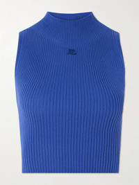 EDITORS'NOTES Courreges' designs often pay tribute to the '60s, but with a modern slant. Rib-knitted from a cotton and merino wool-blend, this tank has a mock neckline, wide armholes and a cropped hem. The label's logo is appliqued at the chest. SIZE & FIT Model measurements: - Fits true to size, take your normal size - Designed for a slim fit - Mid-weight knit - Model is 177cm/ 5'10" and is wearing a size Small - Bust: 85cm/ 33” - Waist: 66cm/ 26” - Hip: 92cm/ 36” DETAILS & CARE - Royal-blue cotton and merino wool-blend - Slips on - 80% cotton, 20% merino wool - Hand wash or dry clean - Designer color: Saphir