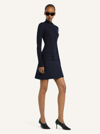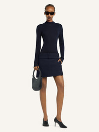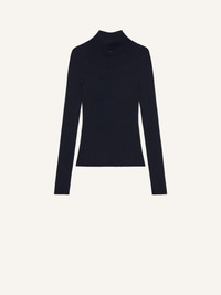Fitted light rib-knit mockneck sweater with centered AC logo on upper chest. The model is 1.75m tall and wears a size S. DETAILS Composition: 80% cotton, 20% merino wool Country of Manufacture: IT SKU: 125MPU128FI00497075 Color: Navy