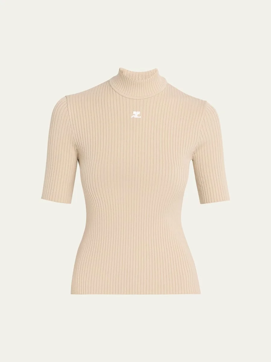Mock-Neck Short-Sleeve Rib Pullover
