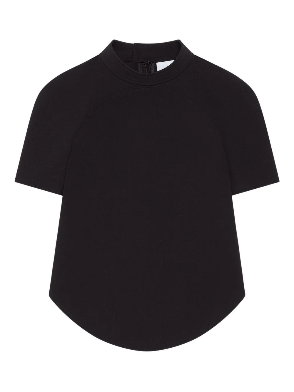 mock-neck short-sleeve t-shirt Highlights - Black - Mock neck design - Short raglan sleeves - Curved hemline Imported Composition Outer: Polyester 45%, Wool 36%, Fabric 19% Washing instructions Read Manufacturer Guidelines