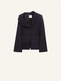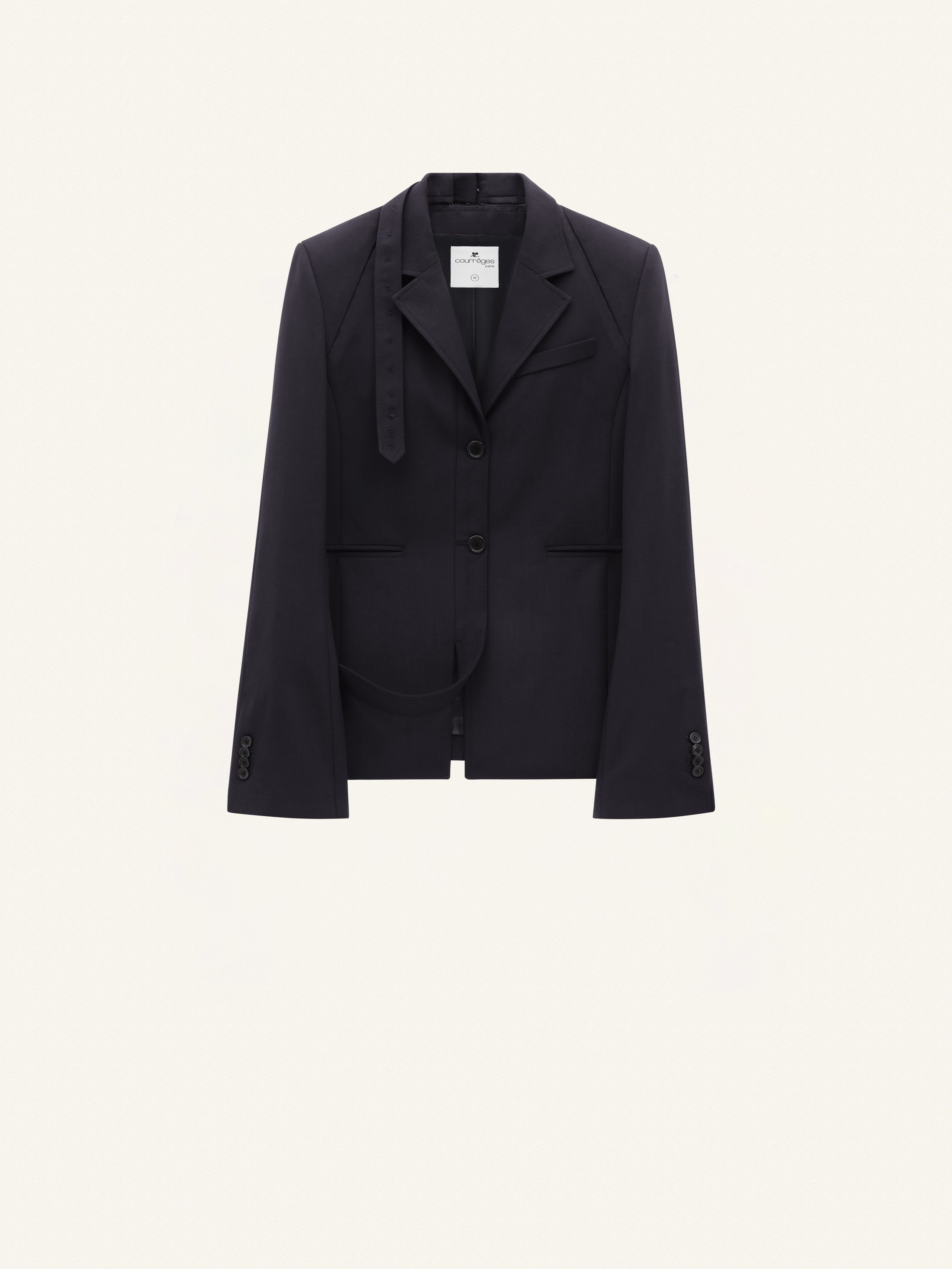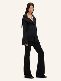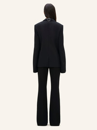 Classic tailored light wool jacket. Hooks and eye adjustable collar. Long flared sleeves and two front welt pockets. The model is 1m75 tall and wears a size 36. DETAILS Composition: 95% virgin wool, 5% elastane Country of Manufacture: SK SKU: 224CVE088WV00469999 Color: Black