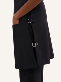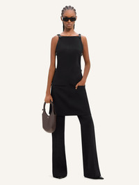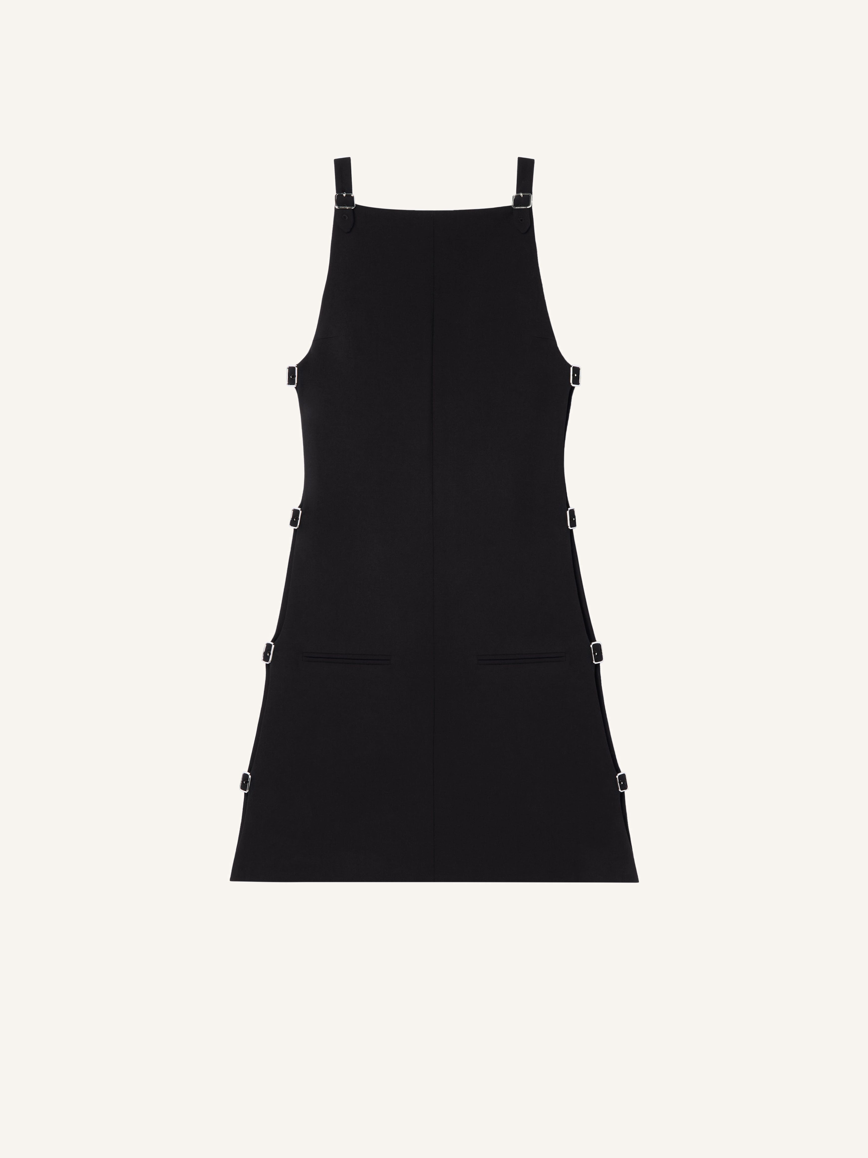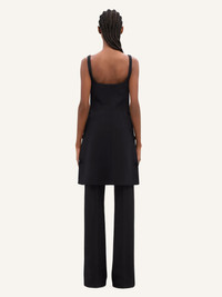 Sleeveless multi sangle trapeze mini dress with two front welt pockets and a metallic AC logo on the side. The model is 1.76m tall and wears a size 36. DETAILS Composition: 100% wool Country of Manufacture: RS SKU: 324CRO451WO01009999 Color: Black