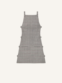 Sleeveless Prince of Wales multi-buckle A-line mini dress with two front welt pockets and a metallic AC logo on the side. The model is 1.76m tall and wears a size 36. DETAILS Composition: 54% wool, 46% polyester Country of Manufacture: RS SKU: 324CRO451PL0166B107 Color: Sand / Mud Brown