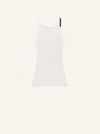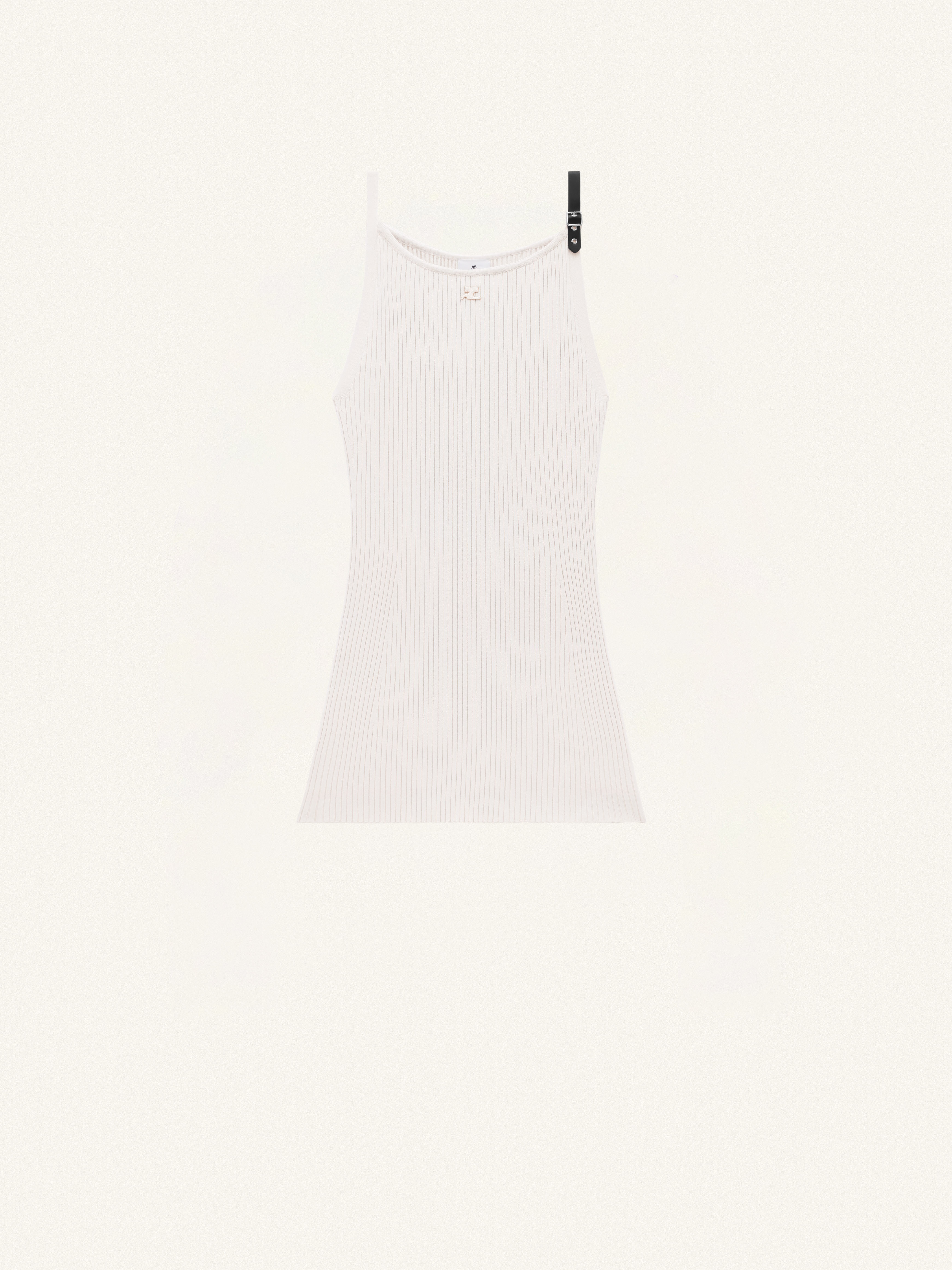 This mini rib knitted tank dress has a buckle strap and bias in contrast. DETAILS Composition : 70% Viscose, 30% Polyester Pays de fabrication : Portugal Couleur : Calcaire Code Article : 124MRO328FI0001
