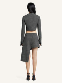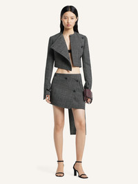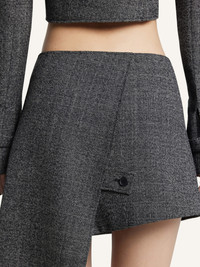 Caviar wool mini skirt with cross-button closure and side pockets. Asymmetrical side panel. The model is 1.77m tall and wears a size 36. DETAILS Composition: 100% wool Country of Manufacture: RO SKU: 425CJU315WO01509901 Color: Black/Heritage White