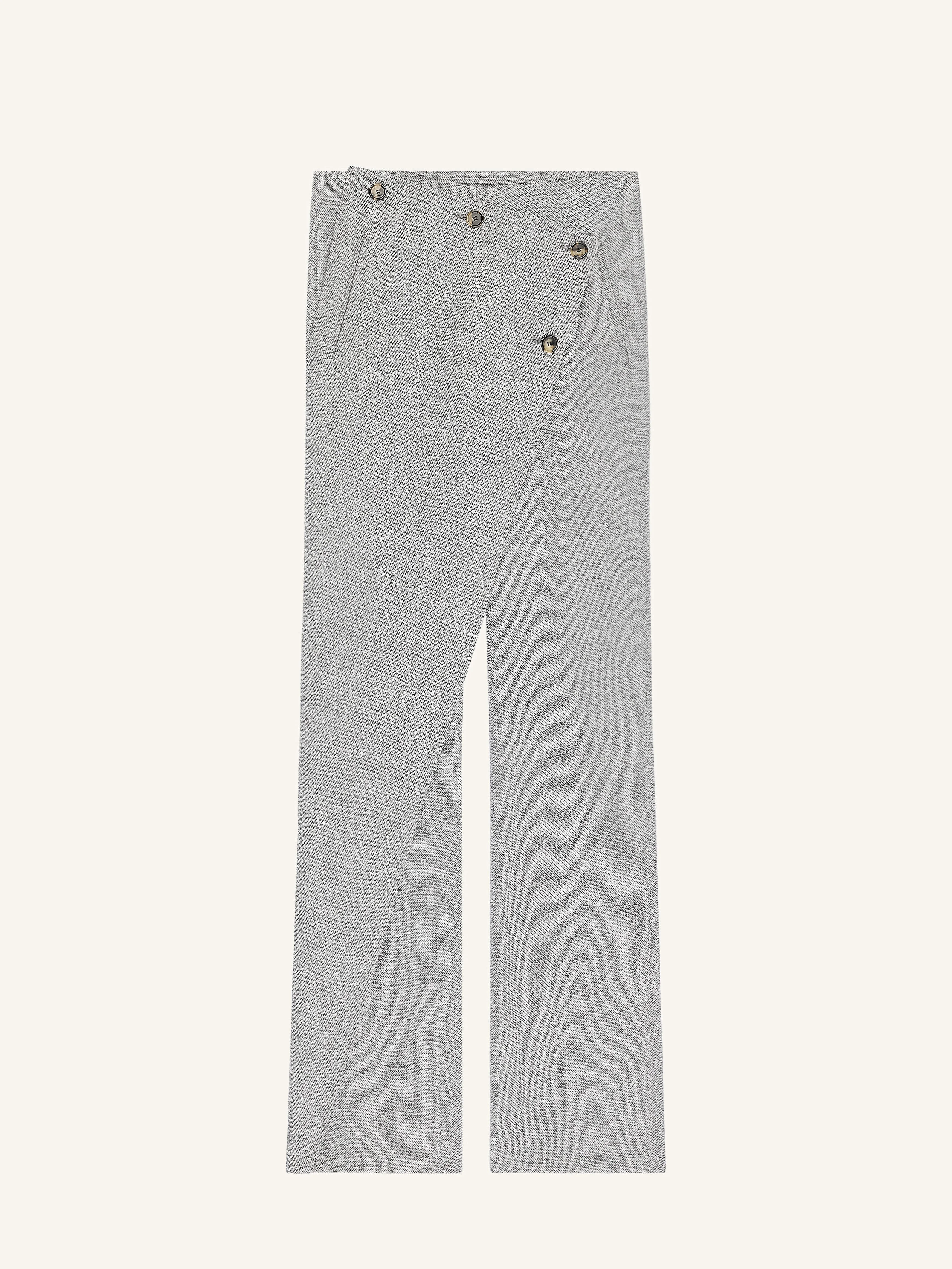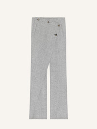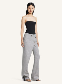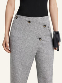 Half-lined caviar wool pants with asymmetrical cross-button panel. Two front side pockets and one back welt pocket. The model is 1.77m tall and wears a size 36. DETAILS Composition: 100% wool Country of Manufacture: IT SKU: 425CPA445WO01500098 Color: Heritage White/Black
