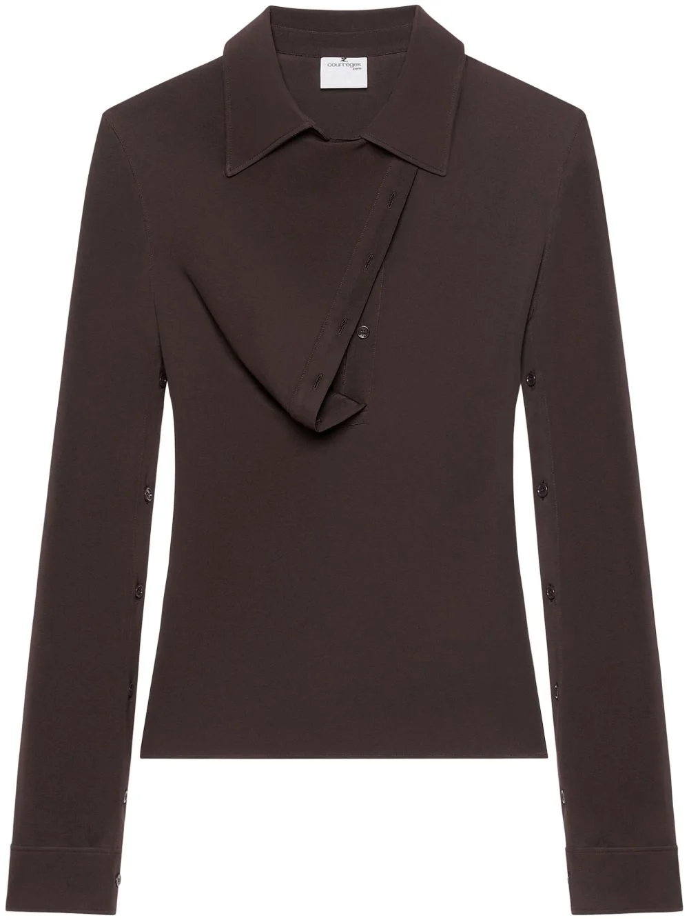 Oblique polo shirt Highlights - Chocolate brown - Polo collar - Asymmetric front button fastening - Long sleeves Imported Composition Viscose 95%, Elastane 5% Washing instructions Dry Clean Only