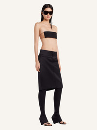 Mid-length satin skirt with seasonal waistband and two front welt pockets. Draped scoop back. The model is 1.80m tall and wears a size 36. DETAILS Composition: 100% polyester Country of Manufacture: RO SKU: 225CJU253PL01629999 Color: Black