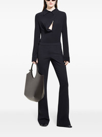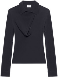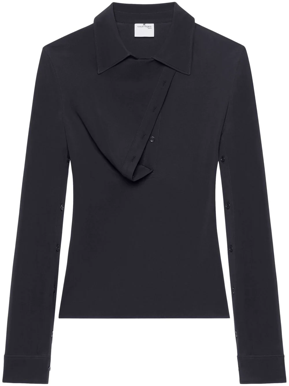 Oblique polo shirt Highlights - Black - Polo collar - Asymmetric front button fastening - Long sleeves Imported Composition Viscose 95%, Elastane 5% Washing instructions Dry Clean Only