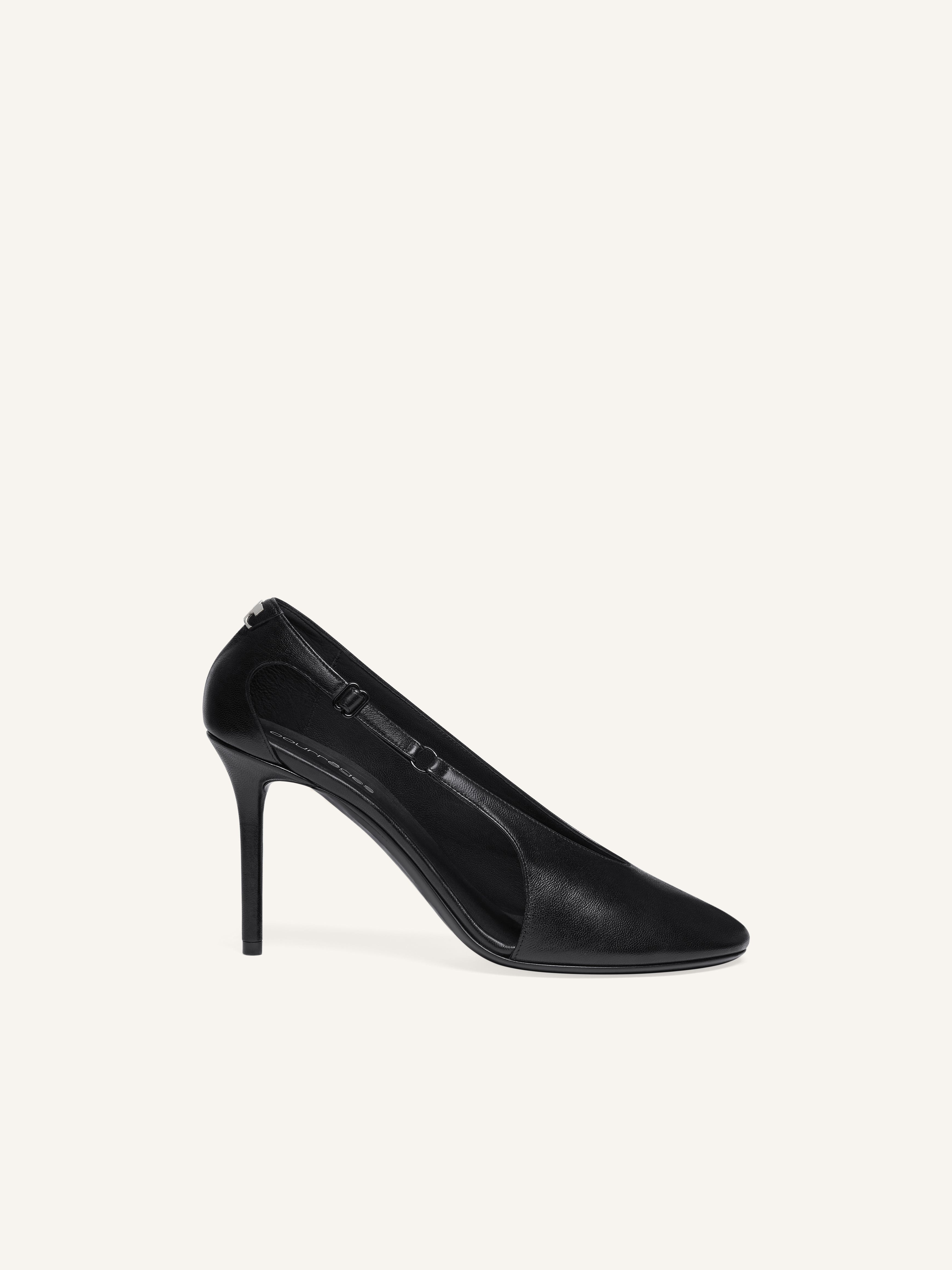 Nappa leather Oblique stilettos. Asymmetrical lingerie details and metal AC logos at the back. Stiletto heel and rounded toe. Heel: 9 cm DETAILS Composition: 100% leather Country of Manufacture: IT SKU: 424SPP025CR00529999 Color: Black