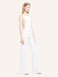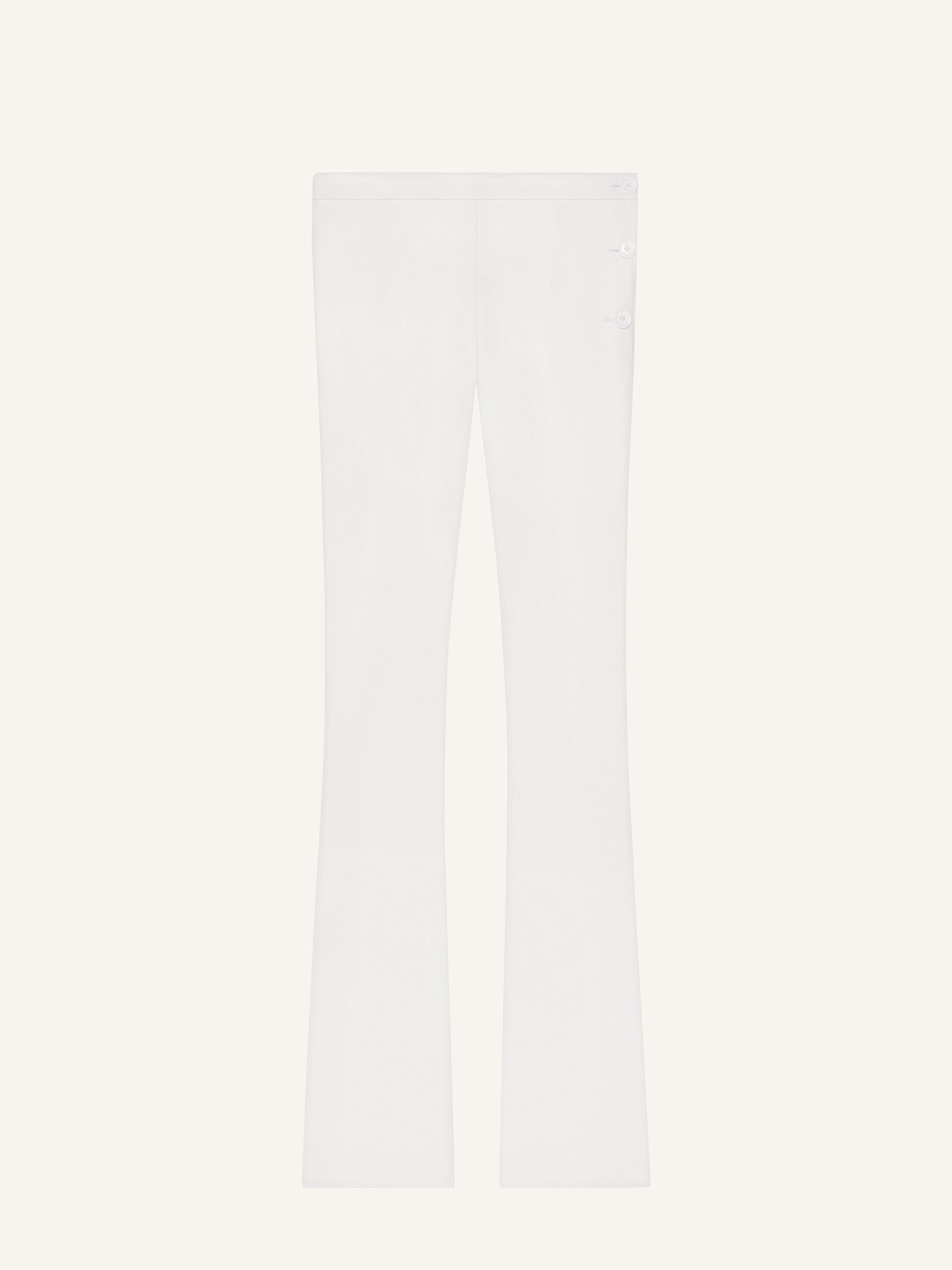 Bootcut tailored pants made of wool with welt pockets. Side opening with buttons. DETAILS Composition: 93% wool, 4% elastane, 3% polyamide Country of Manufacture: SK SKU: 424CPA272WO01130001 Color: Heritage White