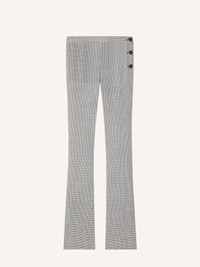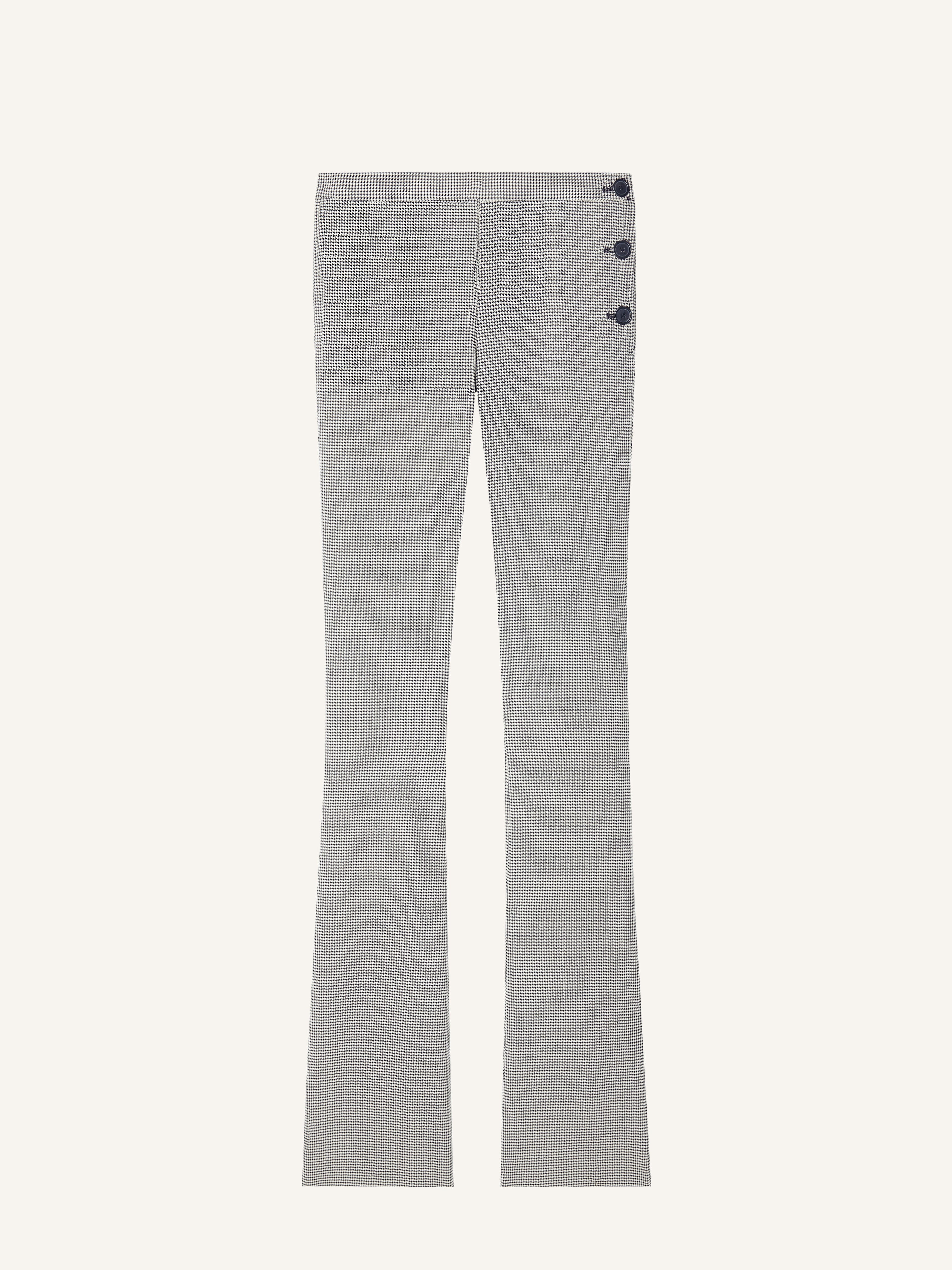 Bootcut tailored pants made of wool with welt pockets. Side opening with buttons. DETAILS Composition: 51% polyester, 41% wool, 4% elastane, 4% polyamide Country of Manufacture: SK SKU: 424CPA272WO0125B123 Color: Black/Natural