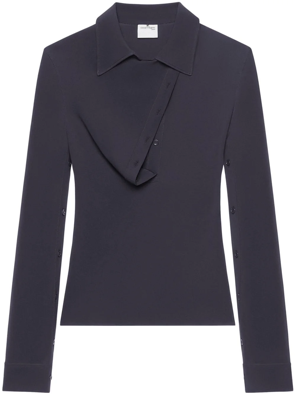Oblique top Highlights - Blue Imported Composition Outer: Viscose 95%, Elastane 5% Washing instructions Read Manufacturer Guidelines
