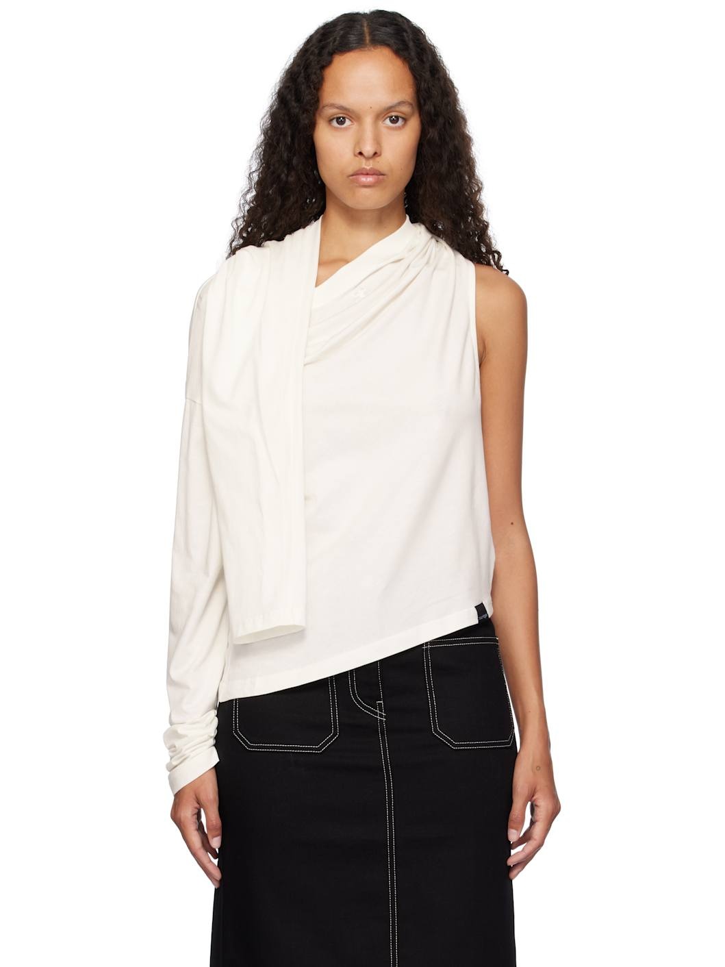 Cotton jersey T-shirt. · Off-the-shoulder, asymmetrical, and wrap construction · Rib-knit crewneck · Embroidered logo patch at chest · Logo patch at front hem · Button tab at side seam Supplier color: Heritage white 100% cotton. Made in Portugal 242783F110019