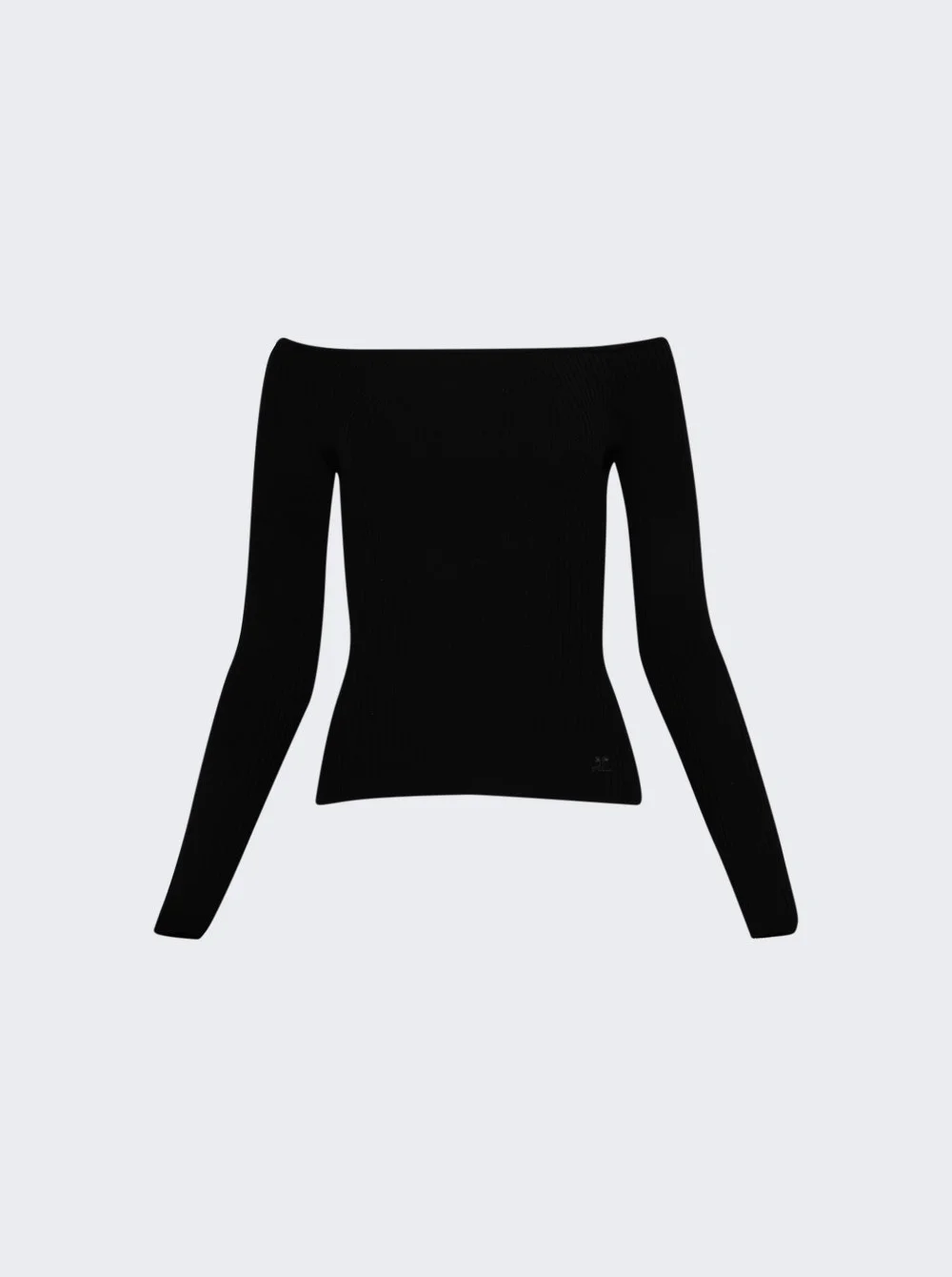 Details - Regular fit - Off the shoulder - Long sleeves - Boatneck rib-knit top - Embroidered AC logo on bottom - Care according to label - Material: 70% viscose, 30% polyester Size Information: Vendor Color Code: Brand Style: 325MTO429FI0001 Designer/Brand: COURReGES