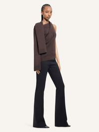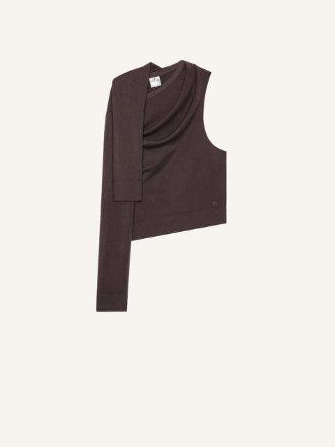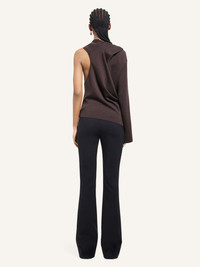Straight knit sweater with long sleeves. One sleeve is buttoned over one shoulder to reveal the other. DETAILS Composition: 100% virgin wool Country of Manufacture: IT SKU: 424MPU199FI00601983 Color: Chocolate