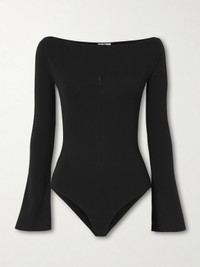 Courreges bodysuit has a discreet two-way zipper at the center, so you can create your own customized cutout. It's made from slightly stretchy jersey and has an off-the-shoulder neckline and flared sleeves.