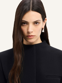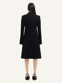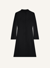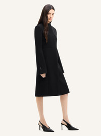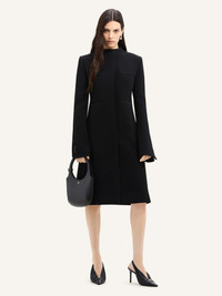 Heritage crepe coat with officer's collar. Long flared sleeves with buttons at cuffs. Four front welt pockets. AC logo at the back of the collar. The model is 1.75m tall and wears a size 36. DETAILS Composition: 100% polyester Country of Manufacture: SK SKU: 324CMA159PL00529999 Color: Black