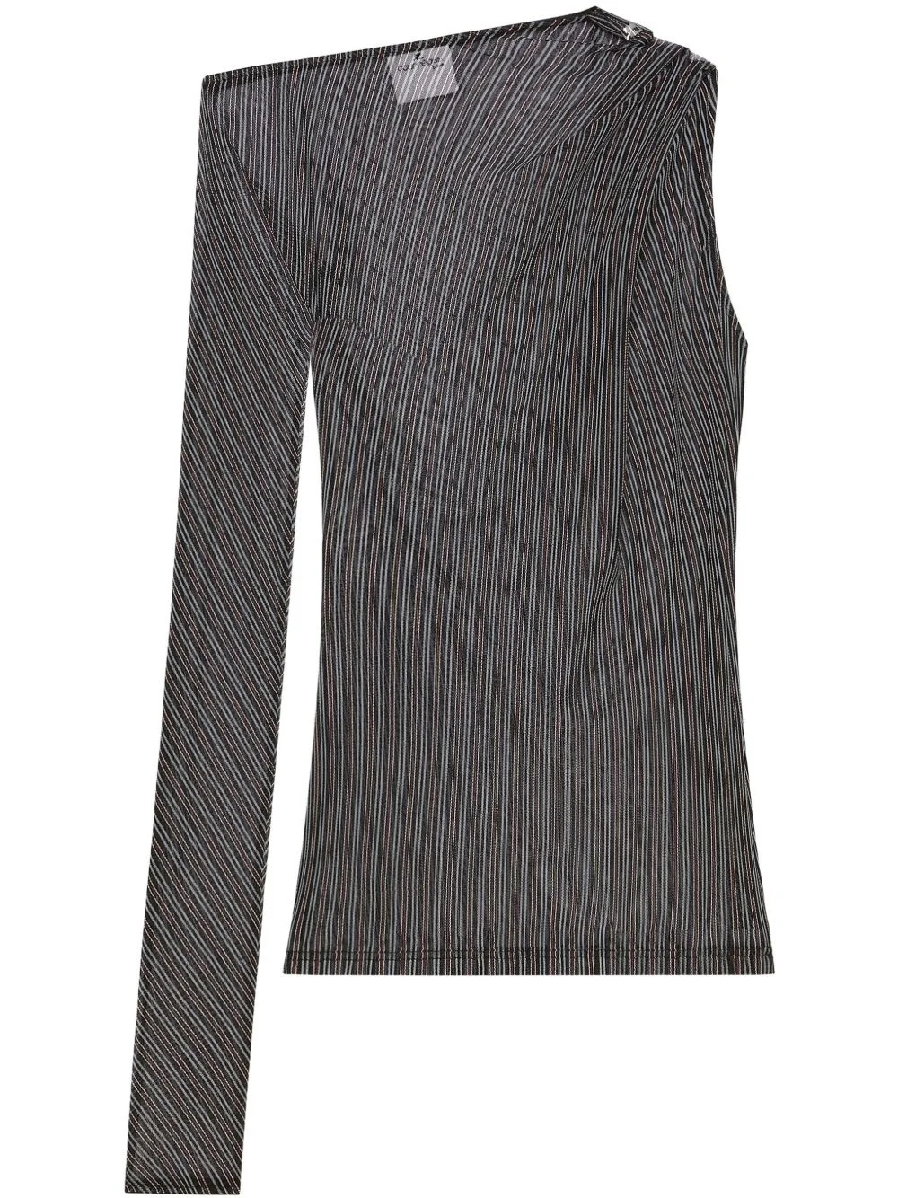 striped mesh top Highlights - Black - Unlined - Asymmetric neck - Single long sleeve Made in Italy Composition Polyamide 100%