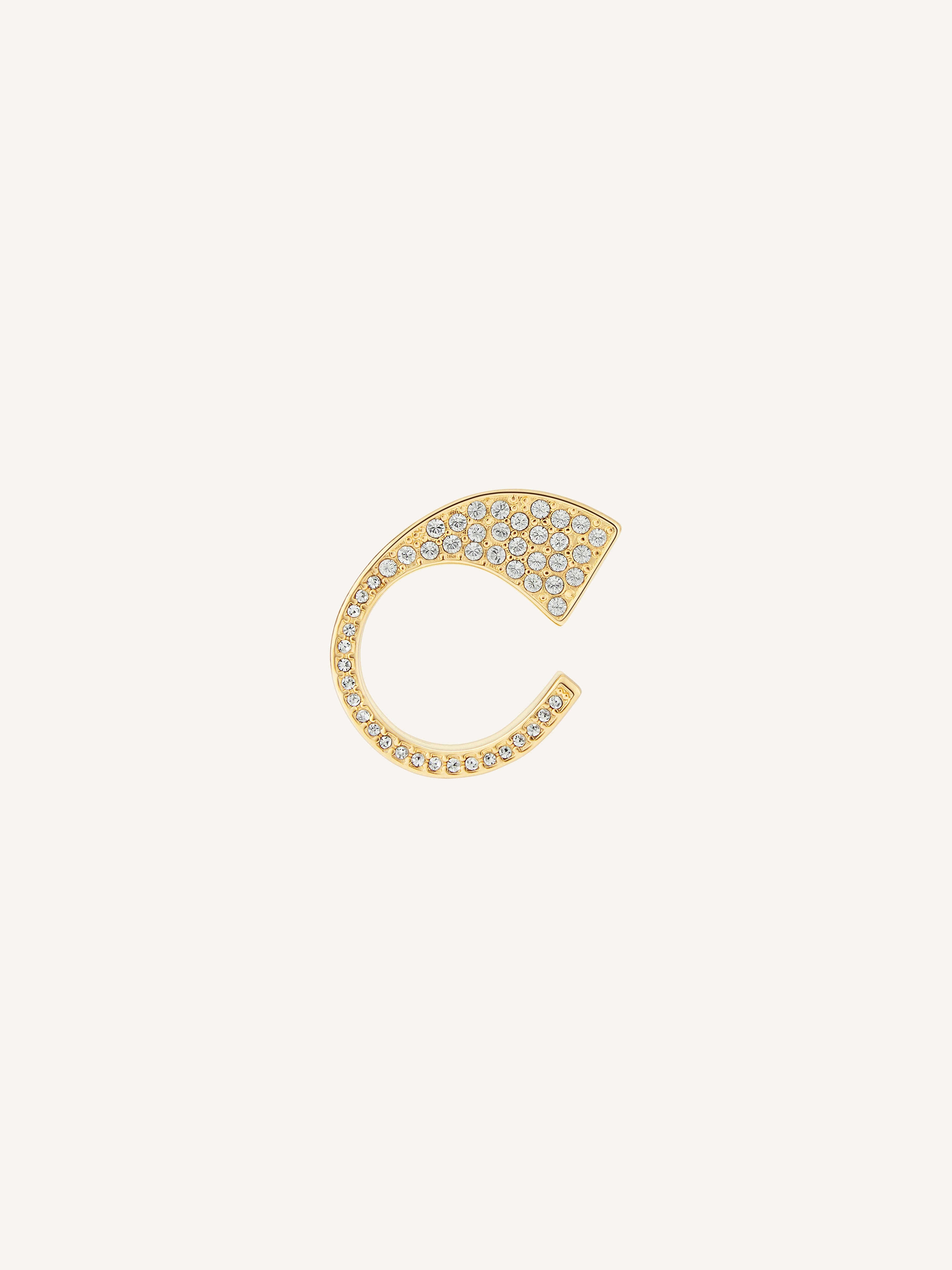 One silver brass ring with rhinestones continuing the “One” line with "Courreges" logo engraved inside. Height: 3.5 cm Width: 1.6 cm Thickness: 0.2 cm DETAILS Composition: 100% brass Country of Manufacture: IT SKU: 125BBG033LA0001M309 Color: Light Gold