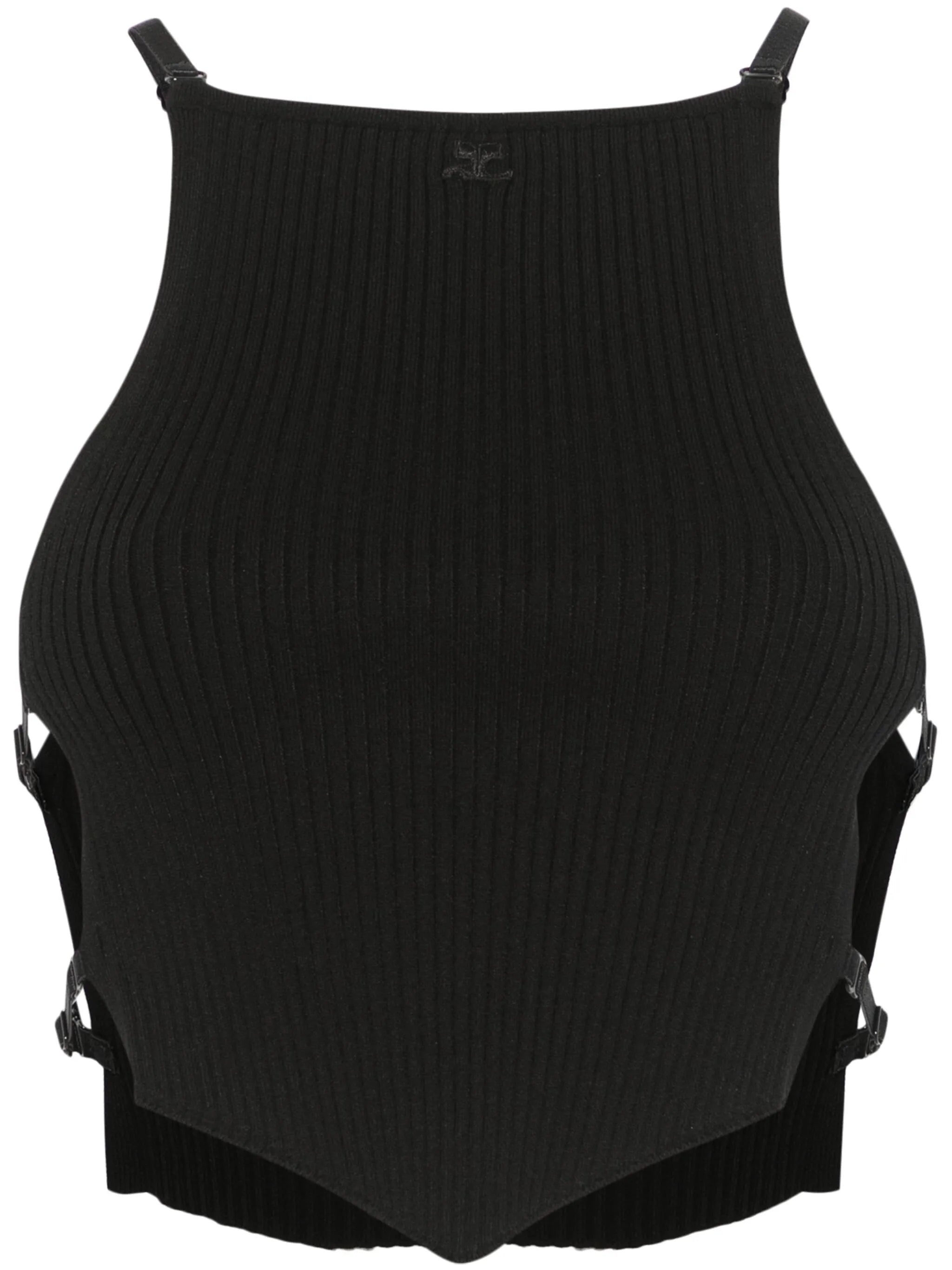 black square neck adjustable spaghetti straps adjustable side straps logo patch to the front - Color: BLACK - Made in: Italy - Designer Style ID: 125MTO383FI 0001 9999 Composition and care Polyester: 30.0%, Viscose: 70.0%