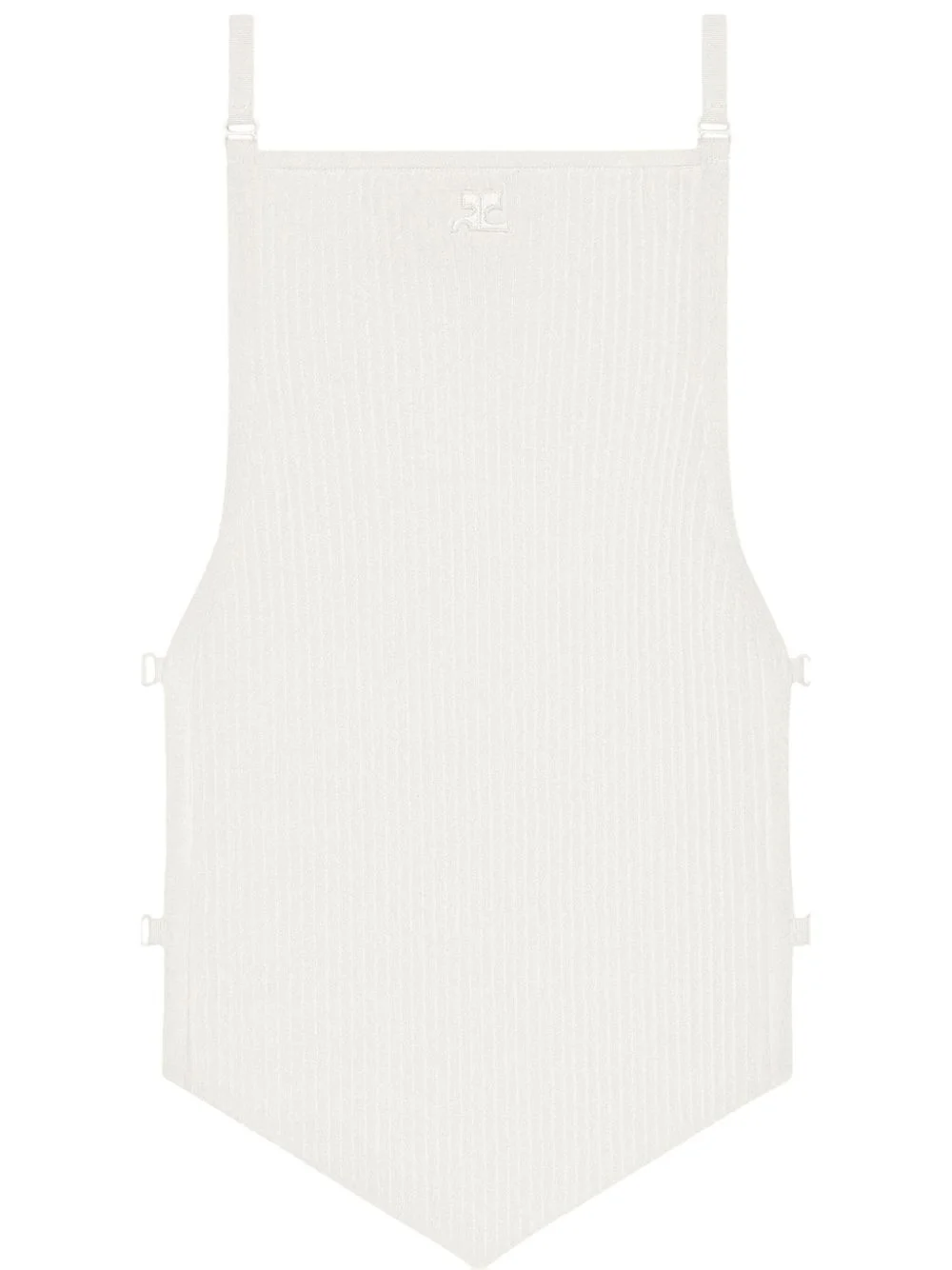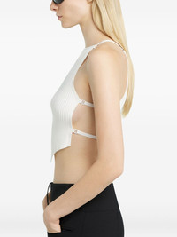 ribbed-knit crop top Highlights - White - Adjustable side straps - Logo patch at the chest - Pointed hem Made in Italy Composition Polyester 100% SIZE & FIT Measurement LENGTH 14.56 in(37 cm) FittingInformation Designed for a close fit throughout The adjustable shoulder straps allow for a preferred fit when worn Made with a midweight knit, this piece offers some stretch