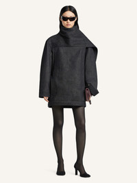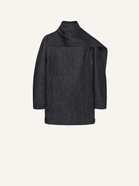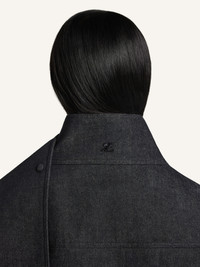 Oversized denim jacket with integrated scarf and adjustable waist belt. AC logo on back collar and chest patch pocket. The model is 1.77m tall and wears a size S. DETAILS Composition: 100% cotton Country of Manufacture: IT SKU: 425DBL323DE00529999 Color: Black