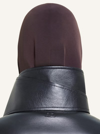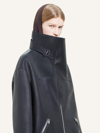 Long oversized zipped leather coat. Large attachable collar with AC logo on back. Long zipped sleeves and two zipped front side pockets. The model is 1.78m tall and wears a size S. DETAILS Composition: 100% calf leather Country of Manufacture: FR SKU: 424LMA172CV00369999 Color: Black