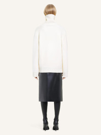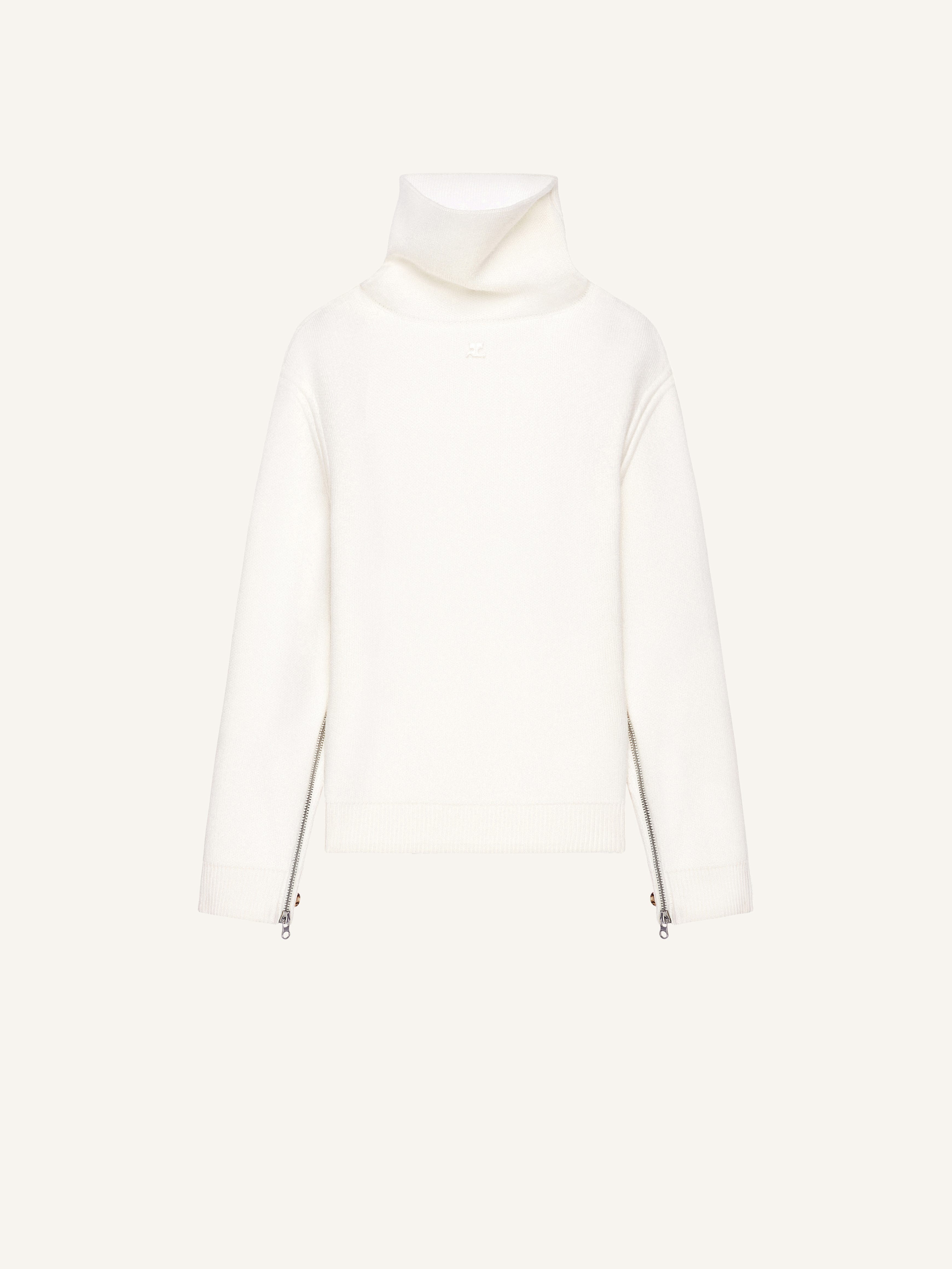 Oversized mock neck knit sweater with long zipped sleeves. Centered AC logo on the front. The model is 1.78m tall and wears a size S. DETAILS Composition: 100% virgin wool Country of Manufacture: PT SKU: 424MPU198FI00360079 Color: Natural Beige