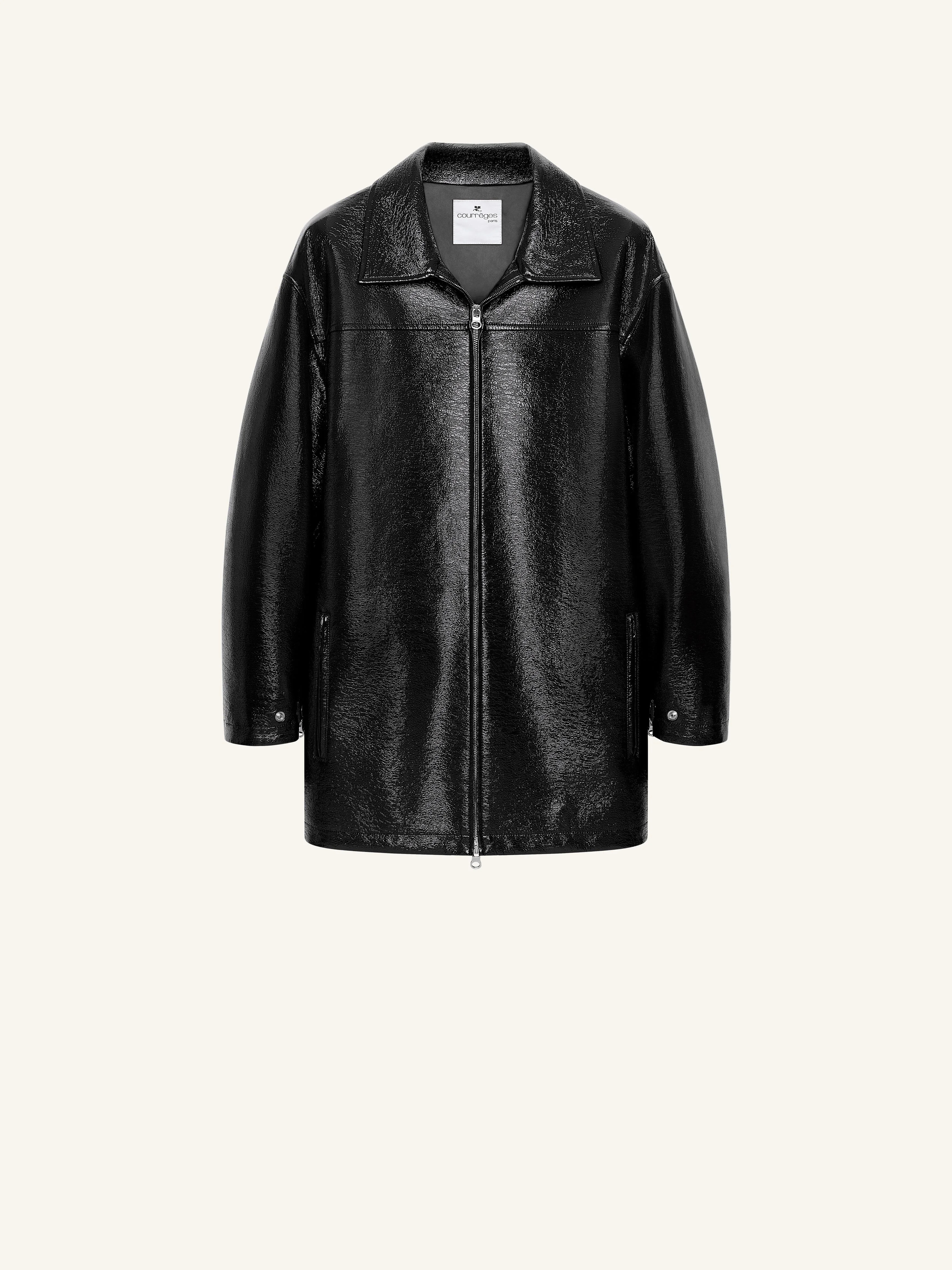 Oversized vinyl jacket with zipped side pockets and AC logo on collar. Adjustable waist belt. The model is 1.77m tall and wears a size S. DETAILS Composition: 88% cotton, 10% polyurethane, 2% elastane Country of Manufacture: RS SKU: 425CBL322VY00149999 Color: Black