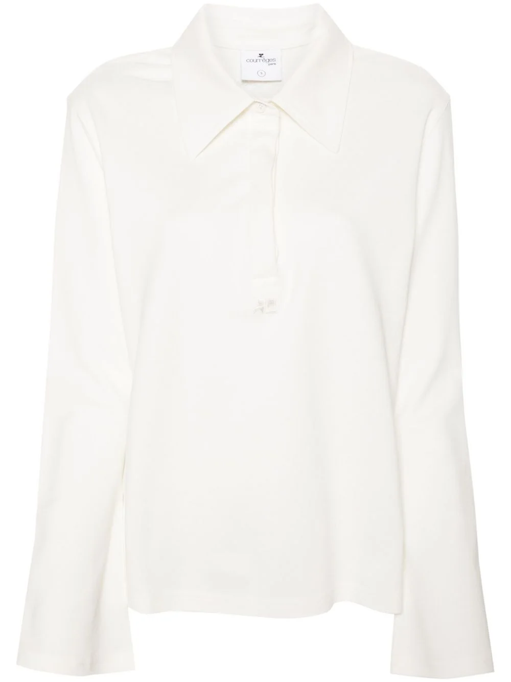 pique cotton polo shirt Highlights - Ecru - Cotton - Pique weave - Embroidered logo to the front - Polo collar - Front button placket - Long sleeves - Flared cuffs - Side slits - Straight hem Imported Composition Cotton 100% SIZE & FIT Model measurements Height 5 ft 9 in(1.76 m) Bust/Chest 31.88 in(81 cm) Hips 35.43 in(90 cm) Waist 24.8 in(63 cm) FittingInformation Designed for a relaxed fit, this piece allows for comfort and movement when worn Made from a midweight non-stretch fabric, this piece offers minimal elasticity when worn This piece fits true to size – take your usual size Washing instructions Machine Wash