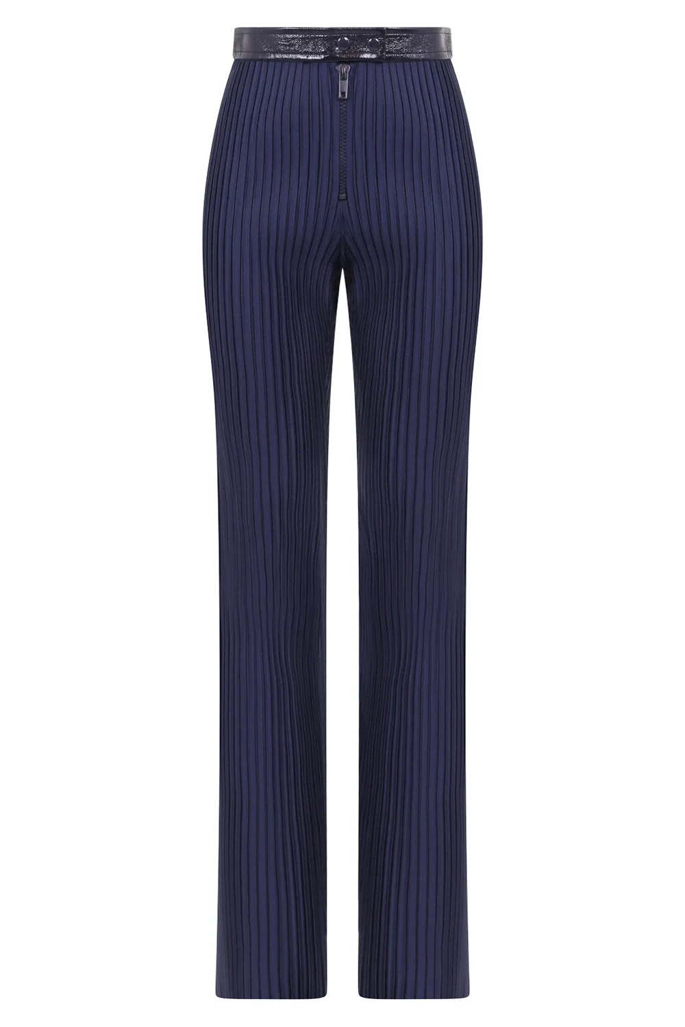 The Courreges Plisse Pleated Pants in Navy are crafted from a pleated fabrication and feature a tonal vinyl waist-band, a press stud and zip fly closure. Fabrication: Main: 100% Polyester Secondary fabric: 88% Cotton, 10% Polyurethane, 2% Elastane Size and Fit Mateja: Model is 170cm/5’6” and is wearing a size FR34 Model Measurements: Bust 83cm, Waist 64cm, Hips 89cm ————— French sizing This style runs slightly large. Measurements Size 36: Waist 70cm, Hip 74cm, Length 120cm Size 40: Waist 74cm, Hip 78cm, Length 120cm