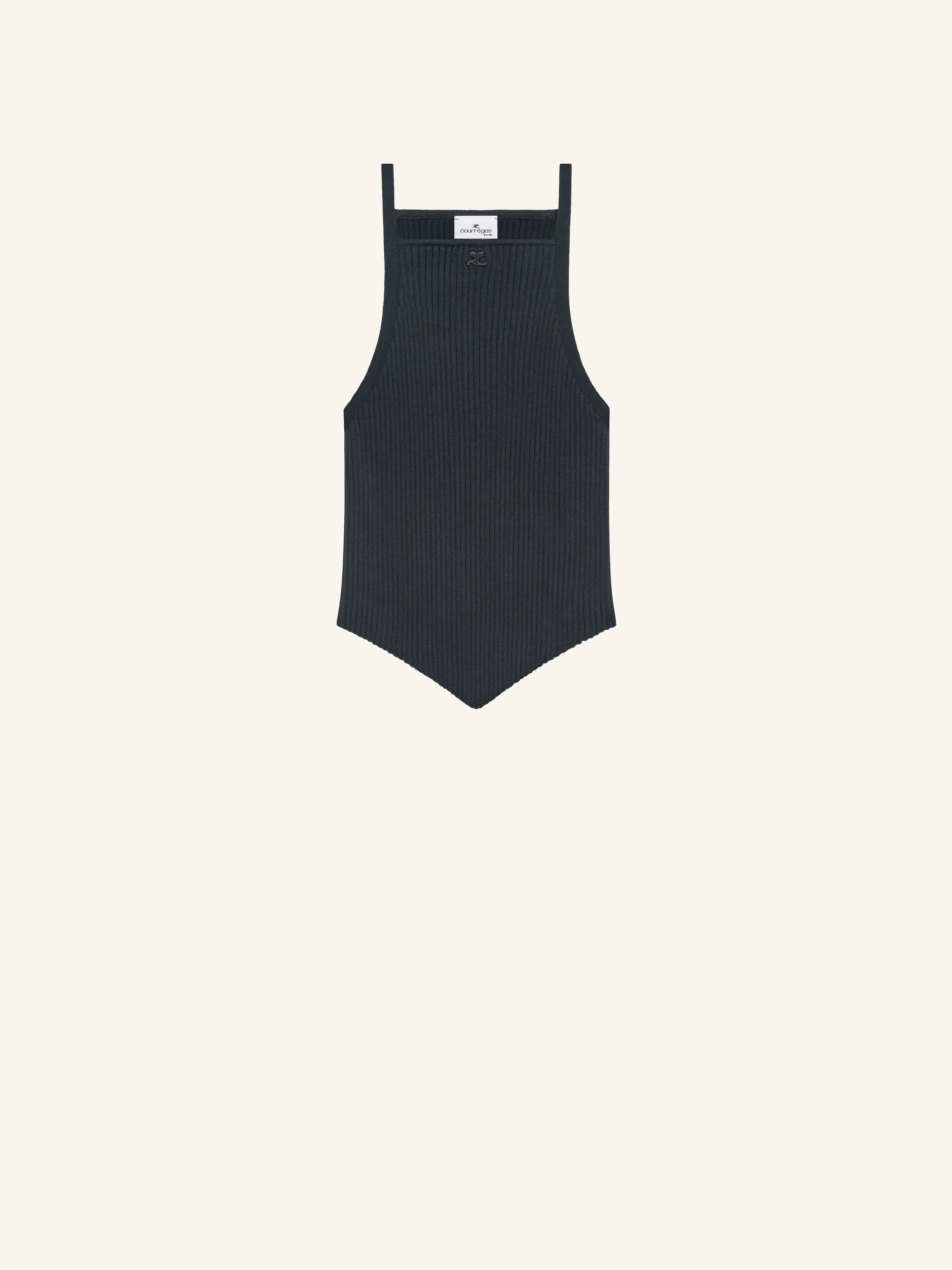 Rib knit tank top with pointed hem. AC logo below neckline. The model is 1.75m and wears a size S. DETAILS Composition: 70% viscose , 30% polyester Country of Manufacture: BG SKU: 125MTO042FI00019917 Color: Carbon