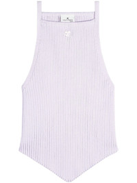 Pointy rib-knit tank top Highlights - Light purple - Ribbed knit - Embroidered logo to the front - Square neck - Sleeveless - Handkerchief hem Imported Composition Viscose 70%, Polyester 30%