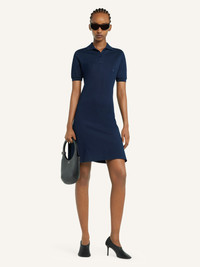 Short-sleeved A-line polo mini dress with AC logo on chest. The model is 1.75m tall and wears a size S. DETAILS Composition: 100% cotton Country of Manufacture: IT SKU: 125JRO554JS01937075 Color: Navy