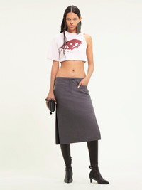 Asymetrical one sleeve twisted cropped t-shirt with Resistance print, AC logo and Courrèges print in the back. DETAILS Composition: 100% Cotton Country of manufacture: Portugal Color: Powder Pink Item code: 323JTS074JS0092