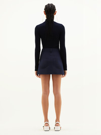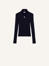 The ribbed knit is a timeless Courrèges piece. 100% cotton made, it is declined here in a long sleeves version with a high collar and enhanced on the front with our embroidered white AC logo. DETAILS Composition: PERMPU022FI0001 Country of manufacture: Bulgarie Colour: Bleu Marine Item code: PERMPU022FI00017075