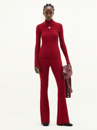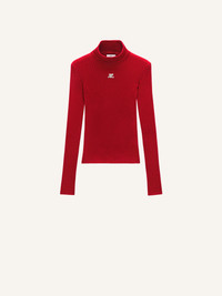 The ribbed knit is a timeless Courrèges piece. It is declined here in a long sleeves version with a high collar and enhanced on the front with our embroidered white AC logo. DETAILS Composition: 70% Viscose 30% Polyester Country of manufacture: Bulgaria Color : Red Item Code :PERMPU022FI00014034